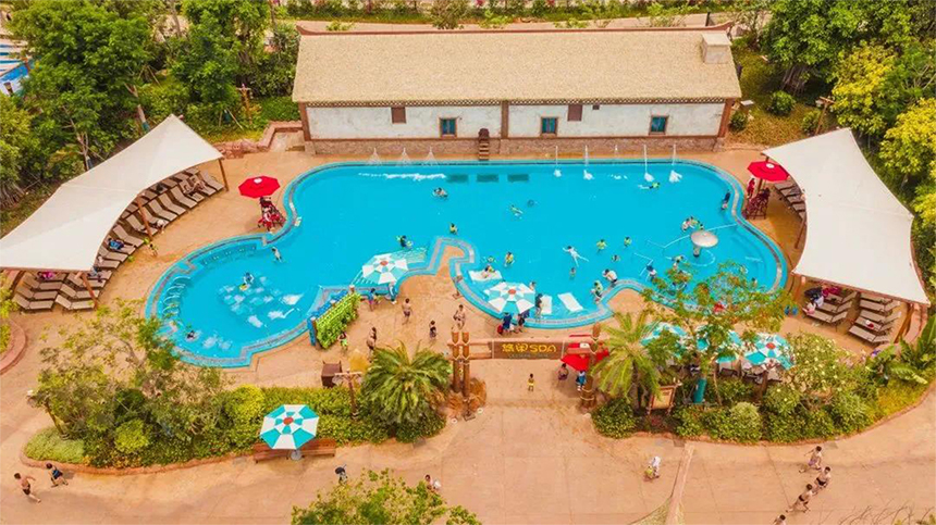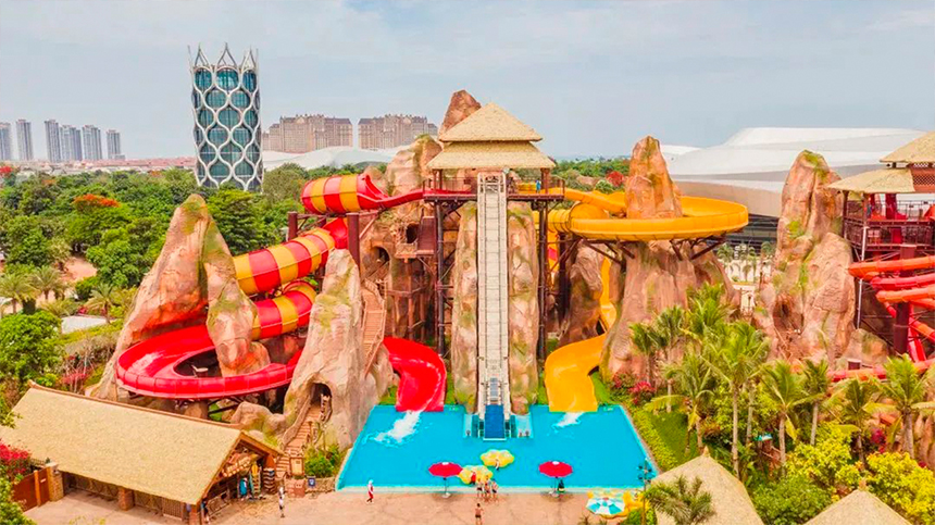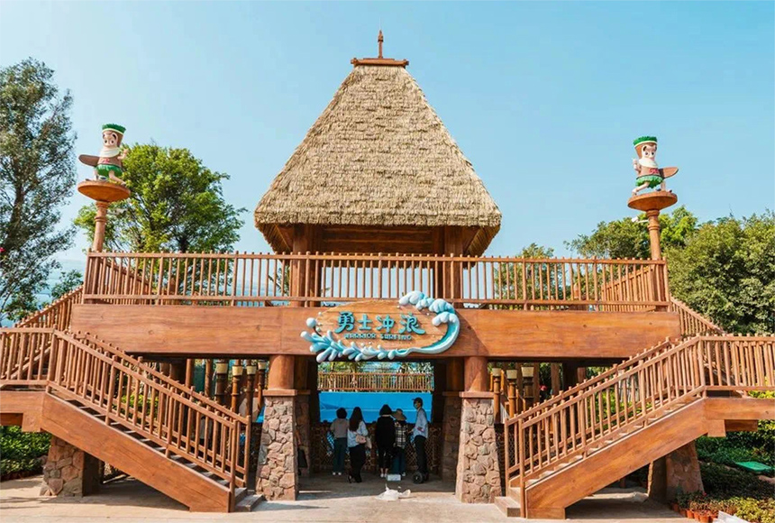 ? ? ? ?走近水上王國,首先會看到有個勇士沖浪通道,上面有座仿真茅草亭子,接著就會被一座巍峨的雪山所吸引,這里是喜馬拉雅雪人的家鄉(xiāng),跟隨雪人可以攀上高峰,參觀山頂?shù)幕┬∥荩谘┤思蚁碛梦绮汀Q┥侥_下,即刻到達(dá)熱帶天堂,雪人在沙灘上漫步放松,在雨林中探索發(fā)現(xiàn),還遇到了神秘的朋友。以雪人作為水上樂園的故事線,使景觀場景更具戲劇性和多樣性。寒冷的雪山作為背景,在熱帶地區(qū)帶來一絲清涼和驚奇感,雪山形成的山洞營造出神秘的入口空間。而雪山下的沙灘度假,雨林探險,則回歸了輕松的度假氛圍,讓游客在水上王國有了豐富的空間體驗,中國已成為世界最大的國際旅游消費國,以此同時科佰也成為國內(nèi)最大的茅草供應(yīng)商。