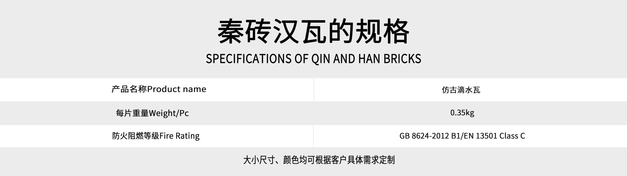 ? ? ? ? ?深圳市科佰工貿有限公司為弘揚中華民族傳統文化增磚添瓦,新研發一套仿古園林建筑材料秦磚漢瓦,產品配件包括:青磚、勾頭(筒頭)、滴水、筒瓦、板瓦、脊瓦、擋勾、元頭等以及各種定制古建配件;同時我公司常年承攬各種大中小型古建工程,包括:四合院、廟宇、亭臺樓閣、景區工程,古建群落等,科佰為客戶提供古建主體工程設計、施工、材料以及維護全程跟蹤服務!